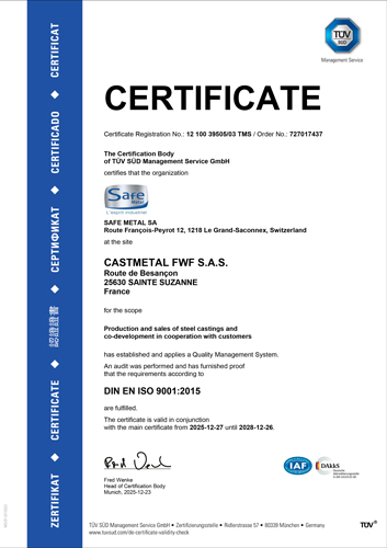 The Safe adventure explains how, from two regional foundries united in the depths of French Franche-Comté, two men, Marc Génot and Gérard Mura, have successively guided the Group for fifty years, so making it a world leader in all its markets, in long-established industrial sectors which are regularly shaken by crises and restructuring.